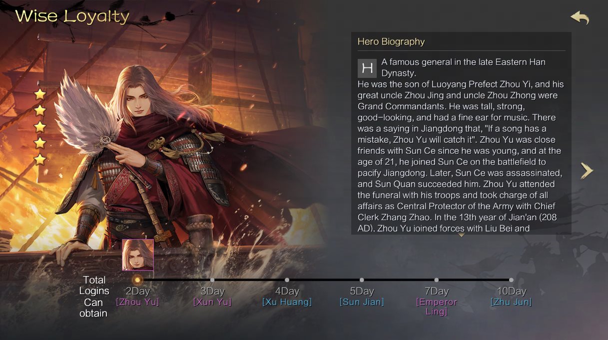 Beyond that, to enhance the Hero acquisition experience in the early Season, we’ve increased both the quantity and Strength of Heroes obtainable in the "Wise Loyalty" event. Details are as follows: