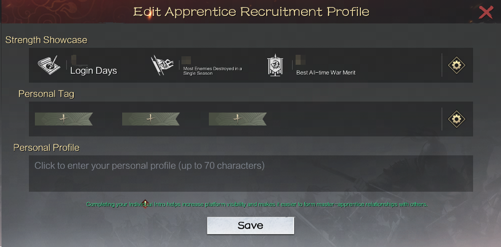 Lords can edit their personal profiles on the recruitment platform to gain more exposure and attract more players to join and learn under their guidance.