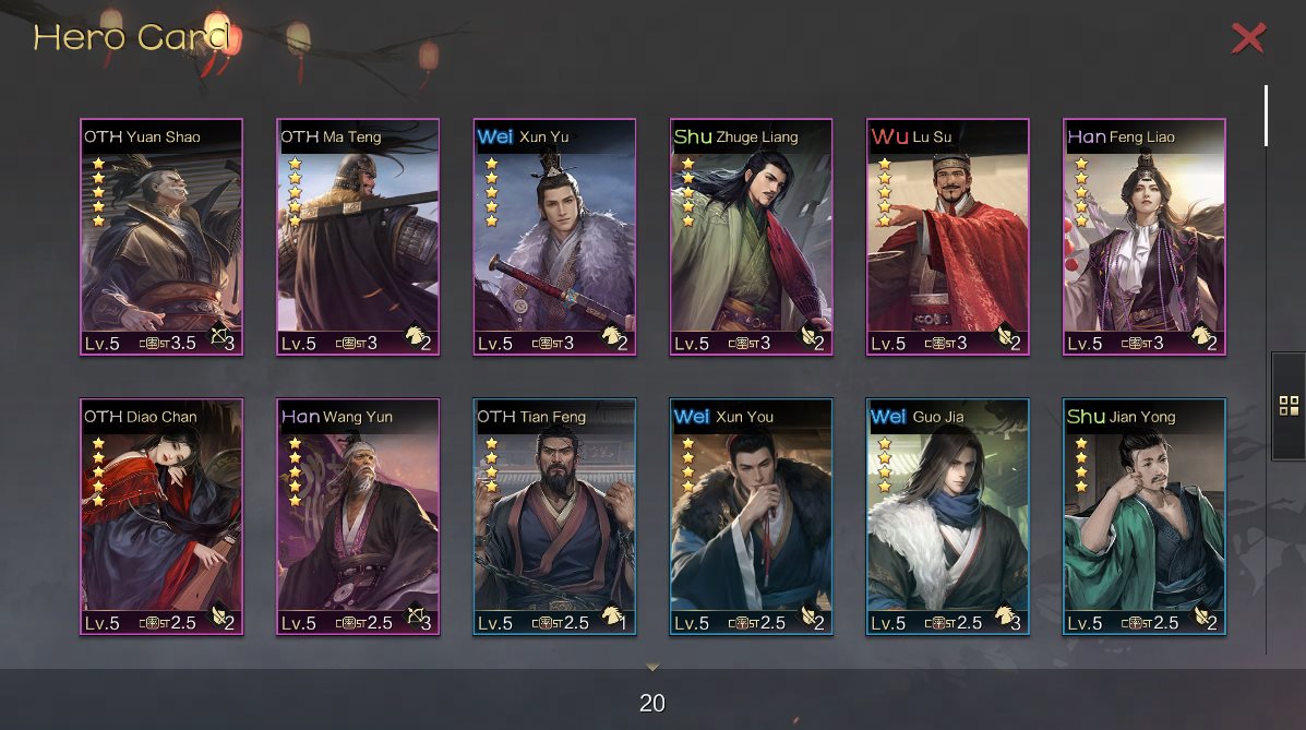 ·This Beauty Card Pack contains the brand new Hero [5★·Han·Feng Liao]. Additionally, the pack has added [5★·Wu·Da Qiao] and [5★·Qun·Diao Chan], while removing [5★·Han·Diao Chan], [5★·Shu·Lady Zhang], and [5★·Wu·Sun Shangxiang].