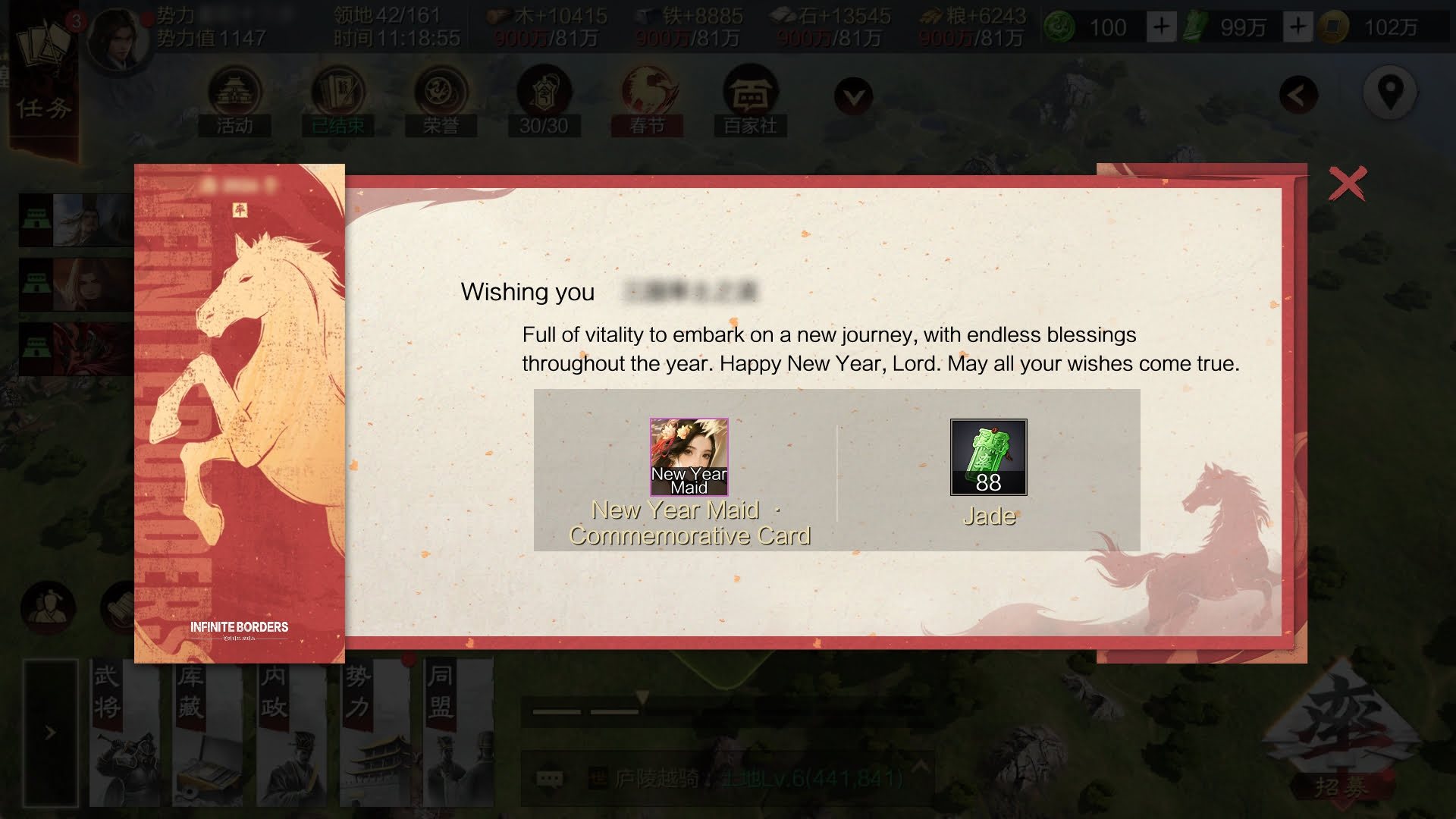 As the Spring Festival approaches, the sound of hooves draws near. Soon, we will usher in the Spring Festival of 2026. We wish all Lords a prosperous new year and happiness for your families. The Bing-Wu New Year also marks the 11th anniversary of INFINITE BORDERS with all of you. Following the previous preview, we will take another sneak peek at the New Year Celebration Series Events: