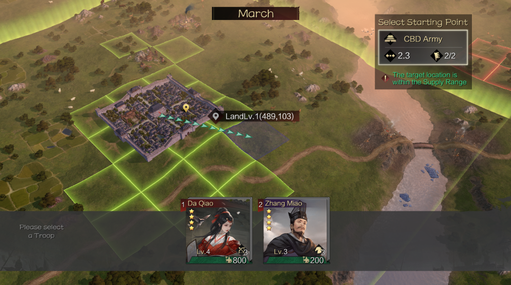 However, it is important to note that if the prowess of your troops does not match the level of their target land, they will suffer significant losses, and the time required for re-draft will also be increased.